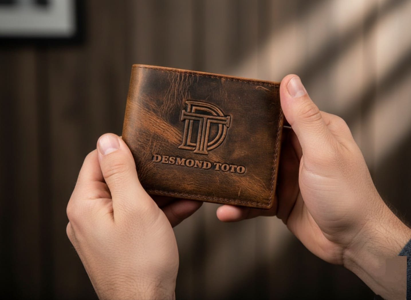 The Obscure is defined by its rich, distressed brown leather that showcases natural variations and a rugged texture. Unlike standard wallets, this piece is designed to embrace life’s journeys, with a surface that evolves and gains character with every use. The centerpiece is the iconic Desmond Toto logo, meticulously debossed into the leather for a tactile, high-end finish.