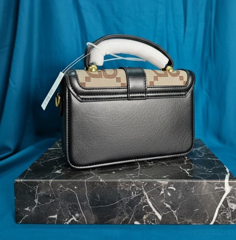 Stylish and elegant, this structured handbag features a classic flap design with a sleek lock closure for a sophisticated look. The sturdy top handle and detachable strap offer versatile carrying options. Compact yet practical, it easily holds essentials like your phone, wallet, and keys. Perfect for everyday outings or special occasions, this handbag adds a refined touch to any outfit.